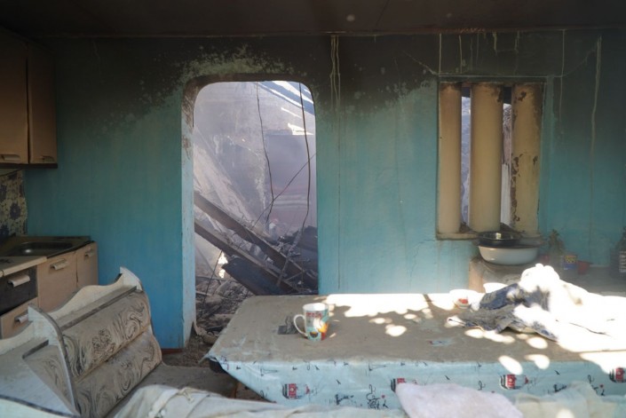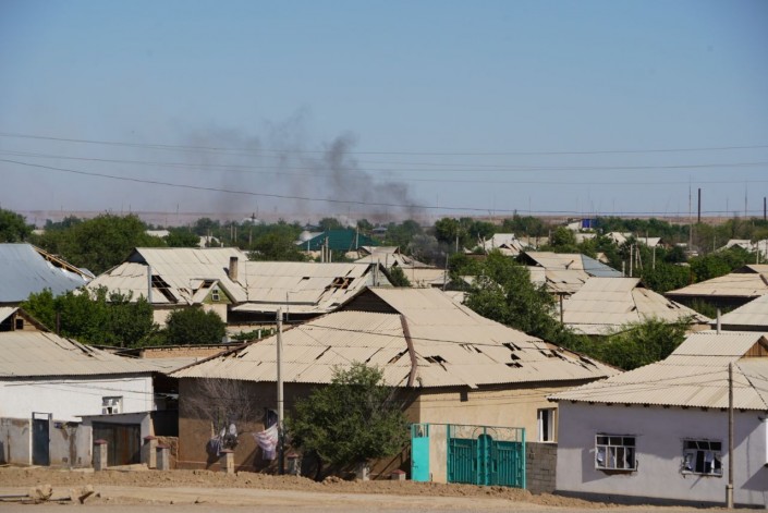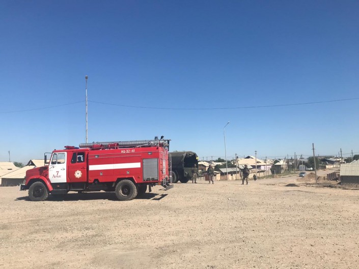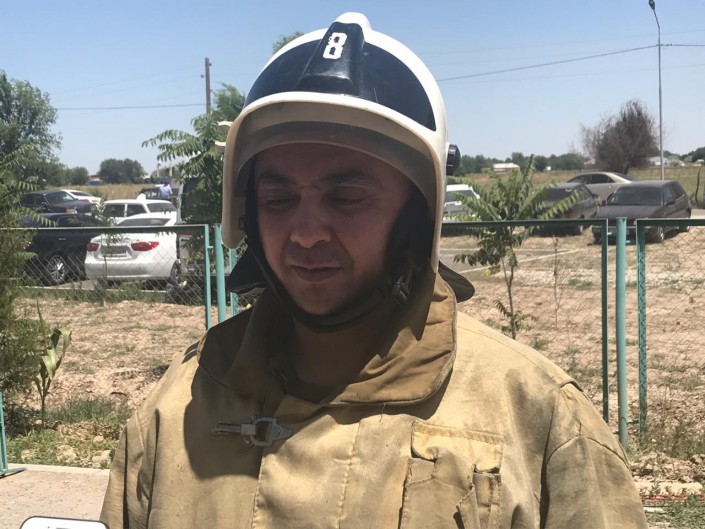 Одной из первых на место пожаров прибыла дежурная группа, где служит подполковник гражданской службы Сабыржан Исаков. По его словам, они помогали эвакуировать людей из города, а затем принялись тушить горевшие дома. К складским помещениям было опасно подходить, поскольку там продолжались взрывы.