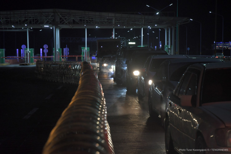 Машины собрались с вечера 21 марта на блокпосту в районе поселка Жибек-Жолы.