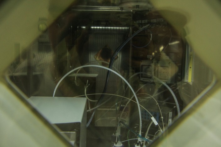 Вся работа в "горячих" камерах производится с использованием автоматизированных модулей синтеза, а также дистанционно с помощью манипуляторов. Если вдруг стеклянный флакон с препаратом в камере разобьется - облучения никто не получит. Человека от препарата отделяет свинцовая стенка камеры толщиной восемь сантиметров. Работа будет приостановлена, пока изотоп не распадется до уровня, допустимого нормативами.