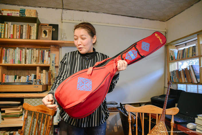 "Мы просто из-за домбры познакомились", - говорит она.