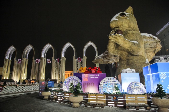 На площади ежедневно проходит winter family party "Путешествие по миру".