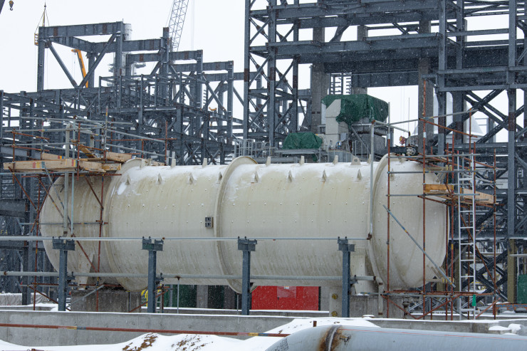 Это будущая установка по производству пропилена. Технологи ее называют установкой дегидрирования пропана. Сырьем является пропан. Он будет поставляться железной дорогой и перерабатываться на установке с получением пропилена. Сейчас ведется монтаж технологического оборудования.