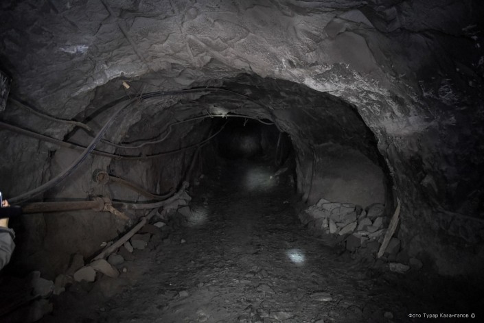 По шахте разносится шум отбойного молотка. В некоторых местах бурят настолько интенсивно, что практически ничего не слышно.