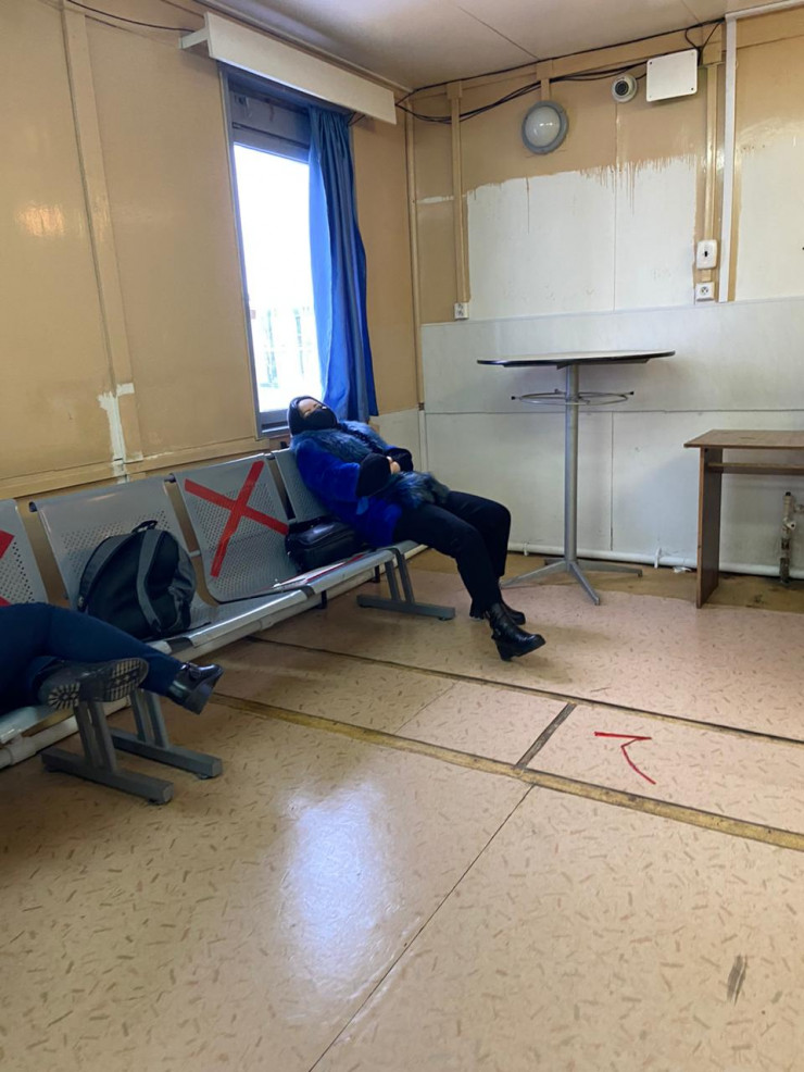 Интересно, что до объявления регистрации внутрь деревянного терминала не пускают. Пока пассажиров не пригласят, нужно сидеть в специальных павильончиках, которые стоят на улице.