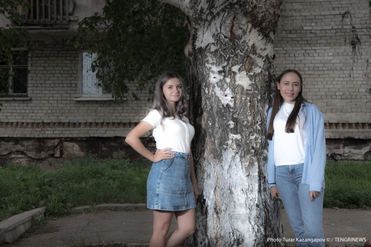 Во дворе одного из домов встречаем вчерашних школьниц. Женя и Алена окончили 11-й класс и теперь в процессе поступления в вуз.