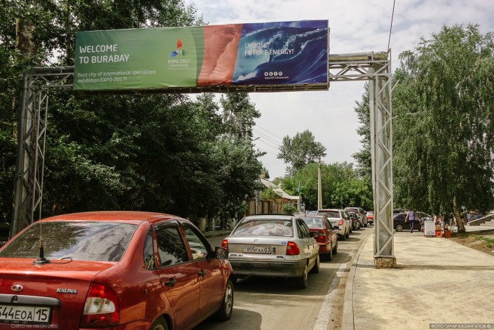 С наступлением выходных в Боровое устремляется большой поток авто со стороны Астаны, и на главной улице поселка образуется автомобильная пробка.