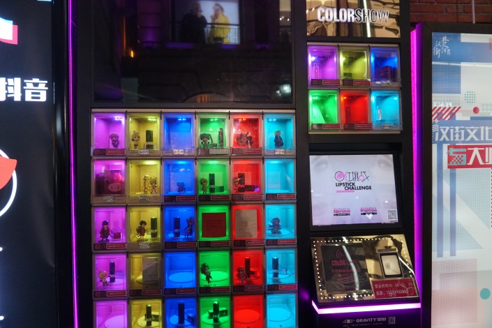 Хотя вот в таких уличных автоматах можно купить себе и помаду, и блеск для губ.