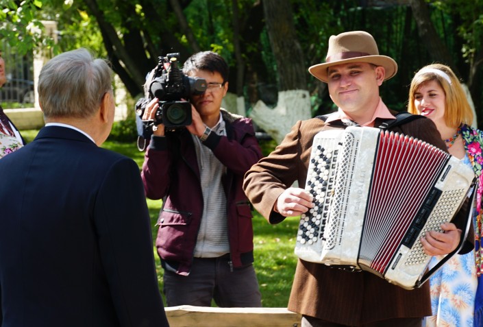 В один момент Нурсултан Назарбаев даже подхватывает песню.