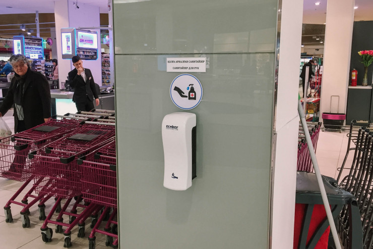 Санитайзеры стали устанавливать не только в общественных местах, но и во многих офисах казахстанцев. Некоторые работодатели еще и маски раздают сотрудникам в целях защиты.