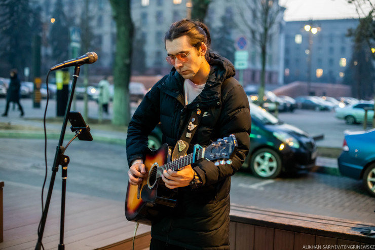 "Вы хотите интервью? Давайте, только быстро", - говорит нам Нуршад, он только подошел к своей "точке", а ему еще предстоит настроить гитару и решить, с какой песни он начнет сегодняшний вечер. Ведь репертуар у него немаленький, и к тому же серьезный: это хиты на турецком, испанском, английском и русском. А еще он владеет казахским и уйгурским языками. На вопрос, как ему удалось выучить столько языков одновременно, парень скромно пожимает плечами, говорит, учил самостоятельно, турецкий, например, помогли понять одноклассники, а на английском он и вовсе случайно заговорил и теперь знает его в совершенстве.