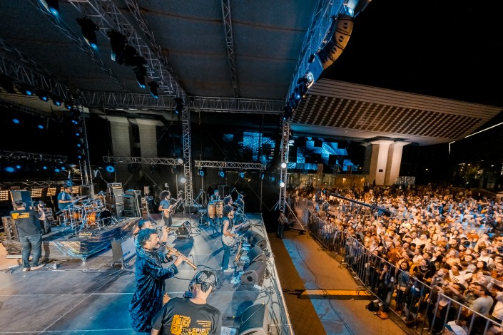 На сцену выходит группа Speed Caravan, год назад завоевавшая сердца публики своей невероятной энергетикой. В составе мультинационального афро-рок-коллектива музыканты из Алжира и Франции. Их называют "The Chemical Brothers с арабским колоритом".