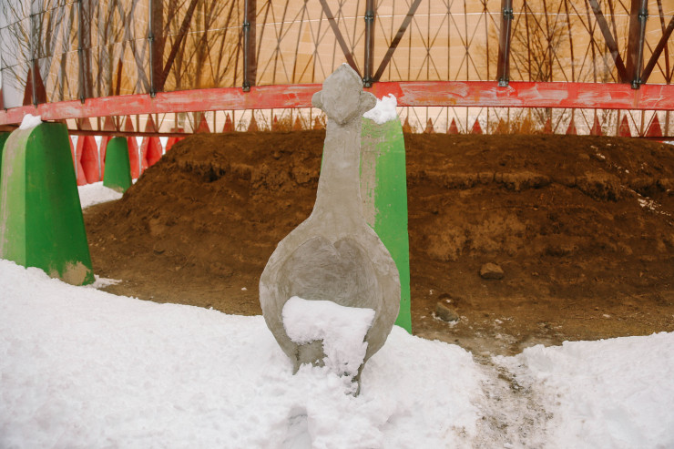 Перед входом в гробницу установлен символ того, чем лечил людей этот сакральный человек, - скульптура того самого кобыза.