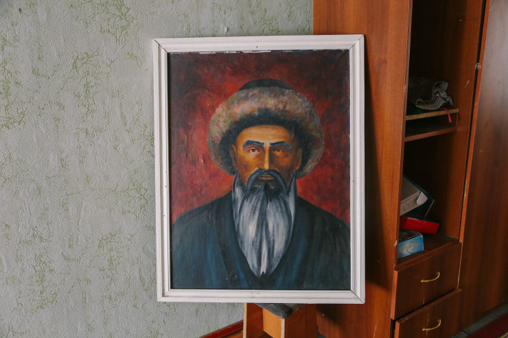 Внутри небольшой музей - сундук, кобыз в кожаном чехле и картина Туктыбая-ата, написанная неизвестным художником со слов тех, кто помнил знахаря.