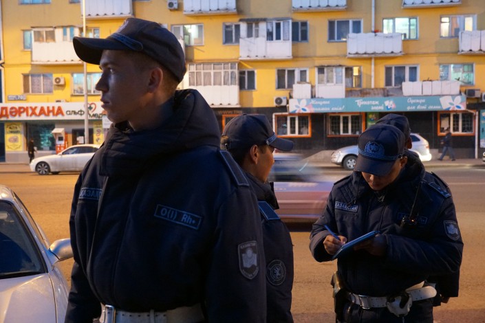 Старший лейтенант Асхат Байдраков служит здесь уже давно. Сегодня он выполняет обязанности дежурного по войсковым нарядам района Сарыарка. Это значит, что он должен объезжать и проверять все маршруты патрульных, кроме того, старшие нарядов незамедлительно докладывают ему о каждом происшествии на территории района, поэтому "экскурсию" нам будет проводить именно он.