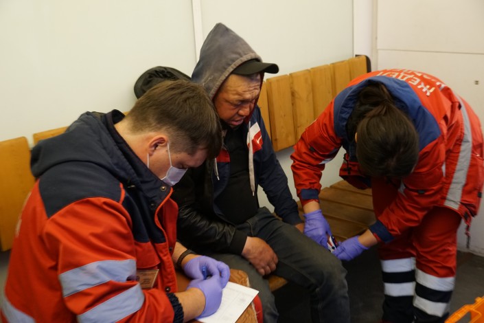 "Мужчина хронический больной. Шел, и плохо стало. Сейчас повезем в больницу - консультация хирурга, и, если все нормально, пойдет домой", - проинформировал нас врач.