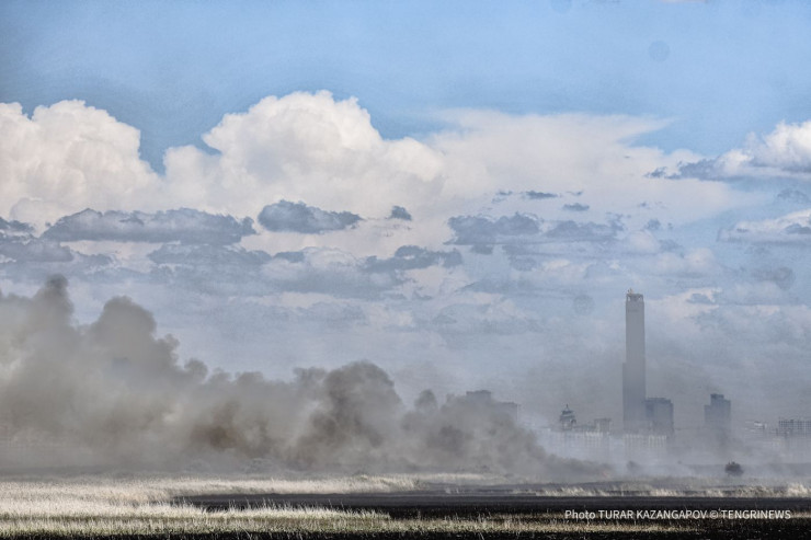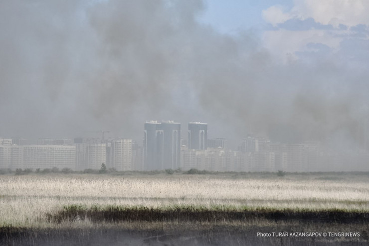 Дым астанчане заметили вчера, 20 июня, во второй половине дня. Шел он со стороны Коргалджинской трассы.