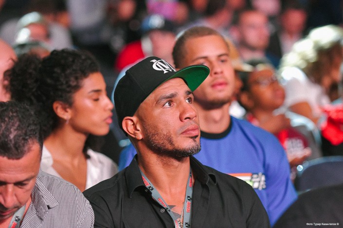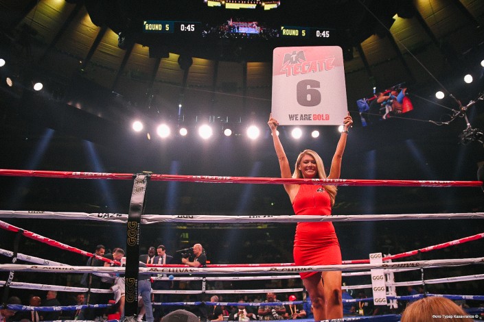 За поединком наблюдает боксер Мигель Котто. Пуэрториканец завершил карьеру в 2018 году. В свое время он был одним из потенциальных соперников Головкина.