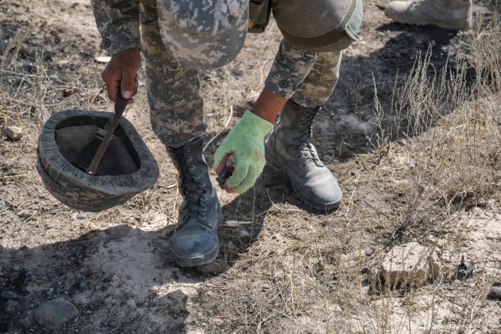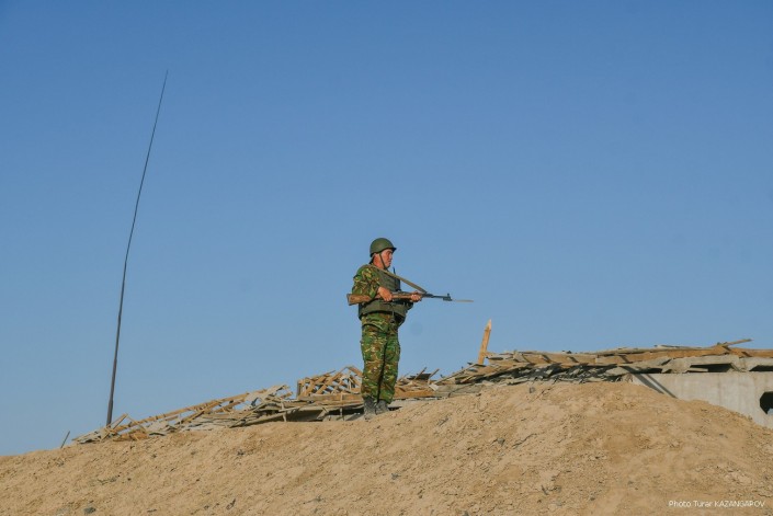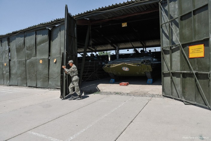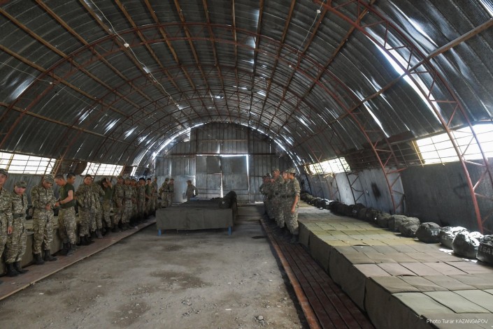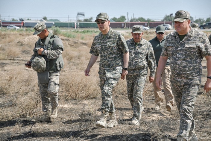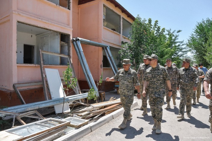 Министр обороны Нурлан Ермекбаев провел обход территории, проверил работу саперов и отправился в в административную половину воинской части.