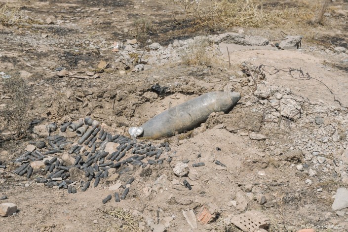 Все фрагменты разорвавшихся снарядов складируют в одном месте.