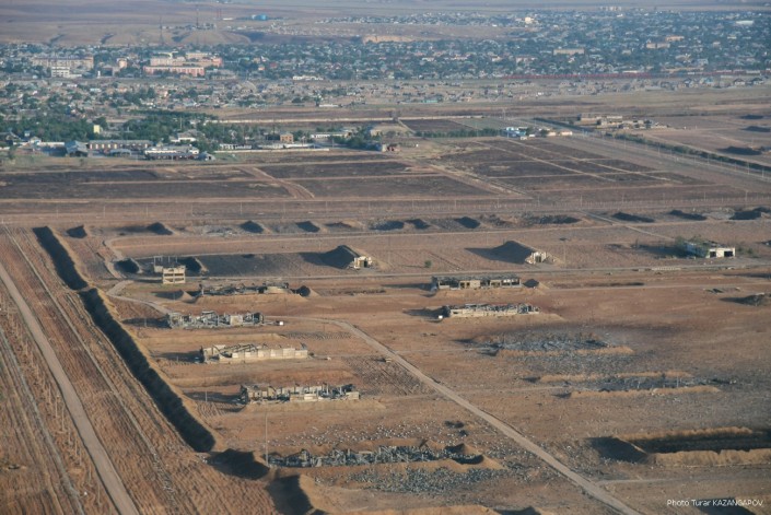 Так сейчас выглядит город Арысь, где 24 июня взорвались склады с боеприпасами. Борт министерства обороны совершил плановый облет окрестностей Арыси. Фотокорреспонденту Tengrinews.kz Турару Казангапову удалось сделать несколько эксклюзивных кадров с высоты.
