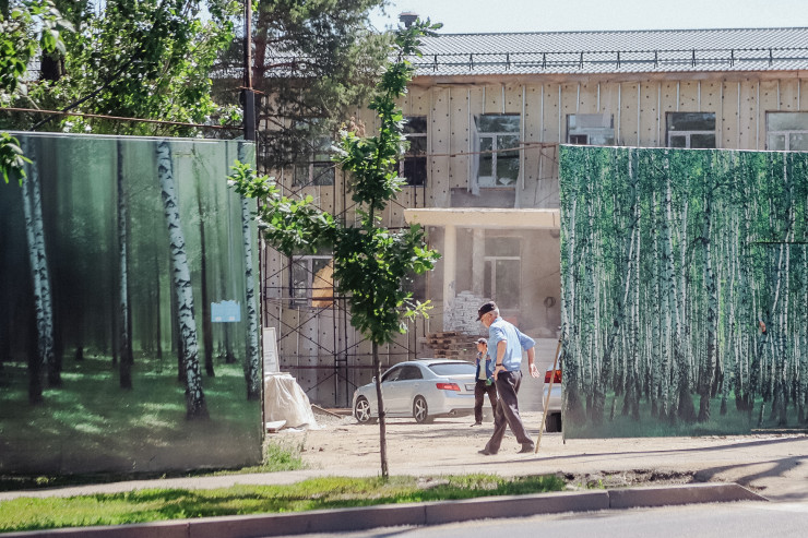 "Сейчас мы окружены только этими бетонными домами, и есть вероятность, что, когда все дома достроят и люди сюда заедут, мы должны будем покинуть 140-ю школу, так как приоритет отдадут людям, которые относятся к ней по участку. Но дело в том, что школа, куда мы вынуждены будем перейти, тоже переполнена, там по 45 человек в классе. ("хотя положено по 25 учеников", - добавляет Канат).
