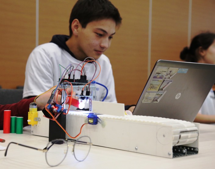 10 команд, состоящих из учеников старших классов из столицы и Караганды, должны были проявить смекалку и находчивость, все свои знания и навыки в робототехнике и за несколько часов сконструировать сортировочный конвейер.