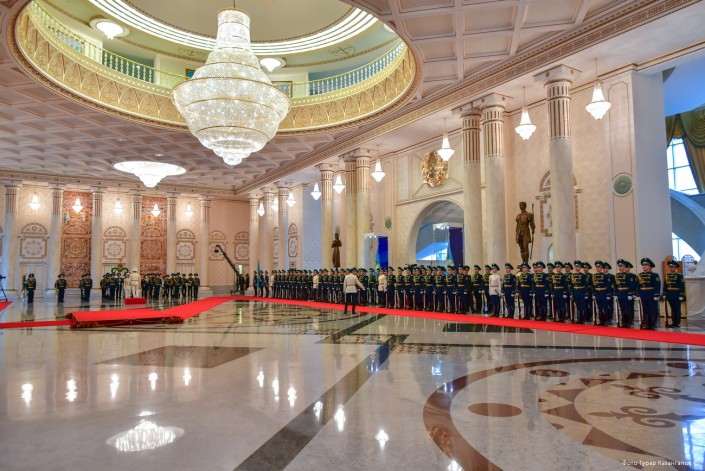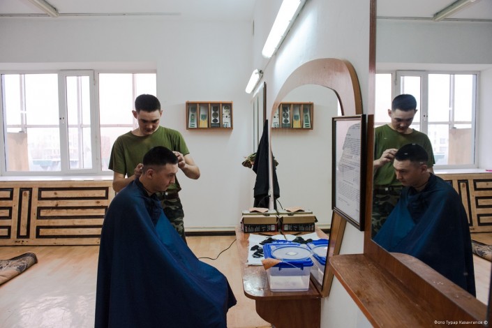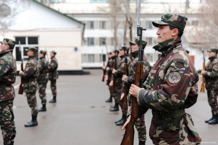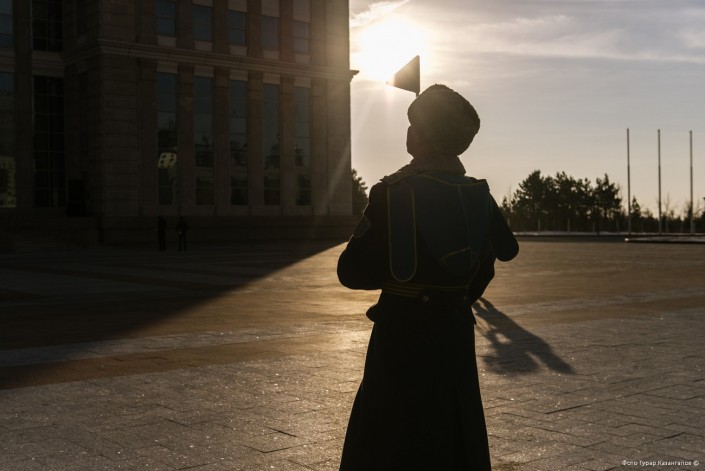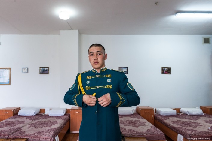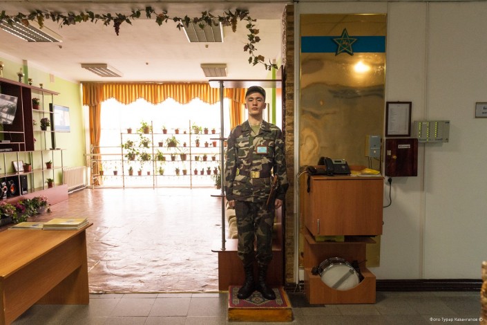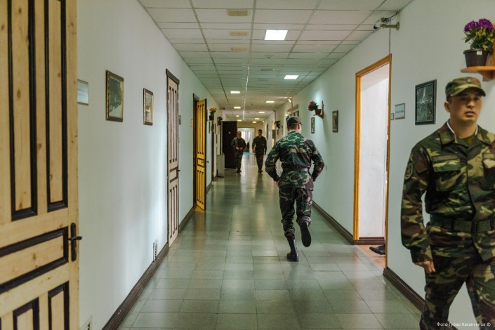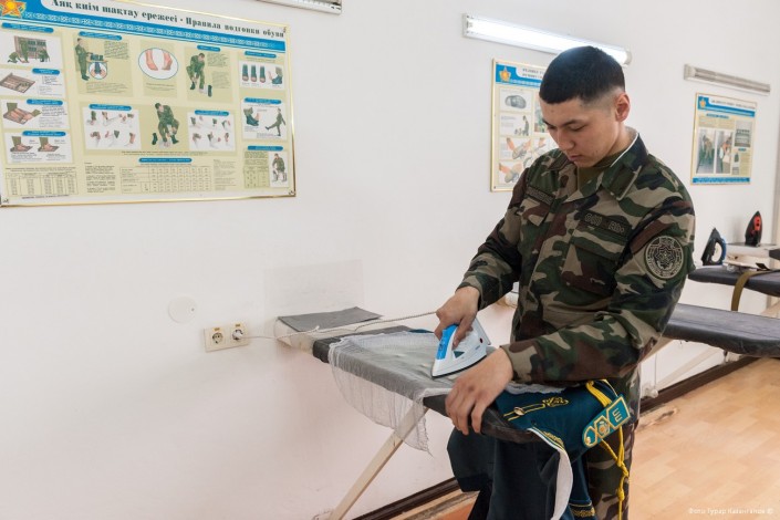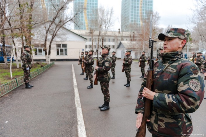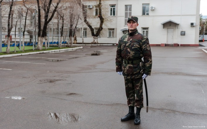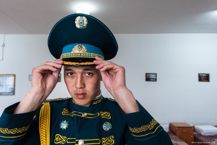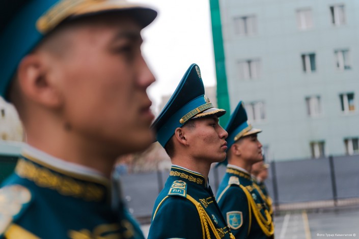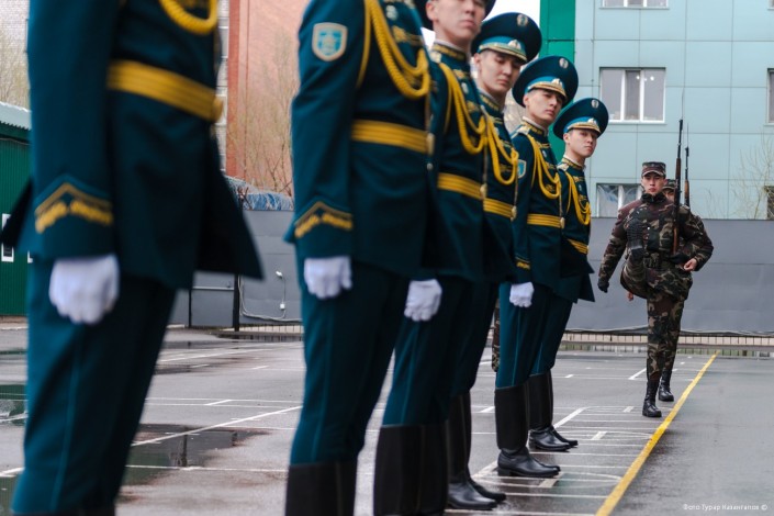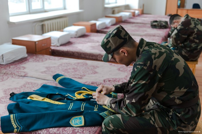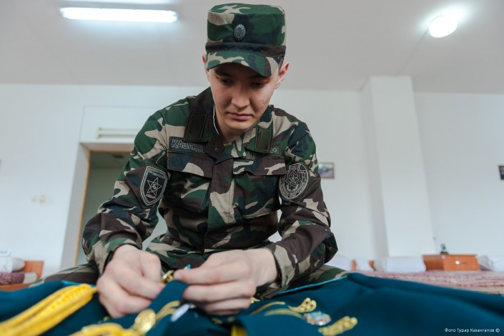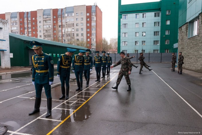 11 часов утра. В воинской части Президентского полка "Айбын" немноголюдно. Одна группа  военнослужащих выехала на репетицию по случаю подготовки к показательным выступлениям, других откомандировали в Алматы для участия в церемониальных мероприятиях к 7 Мая и Дню Победы. Оставшиеся готовятся к торжественному приему в Акорде.