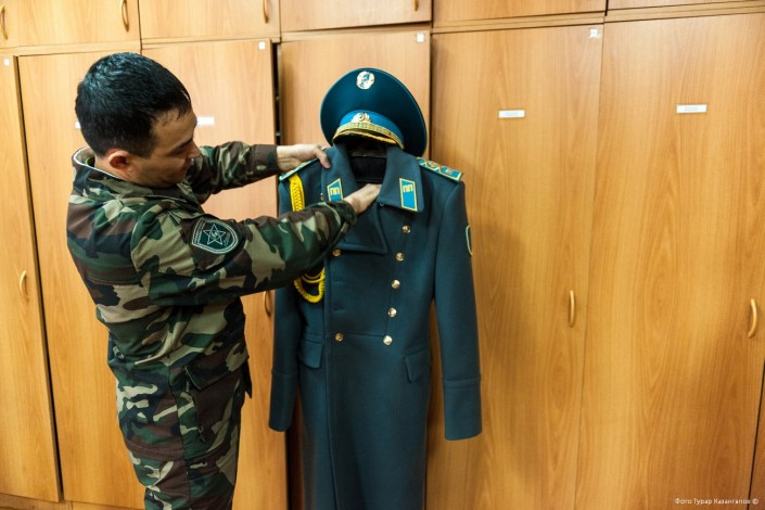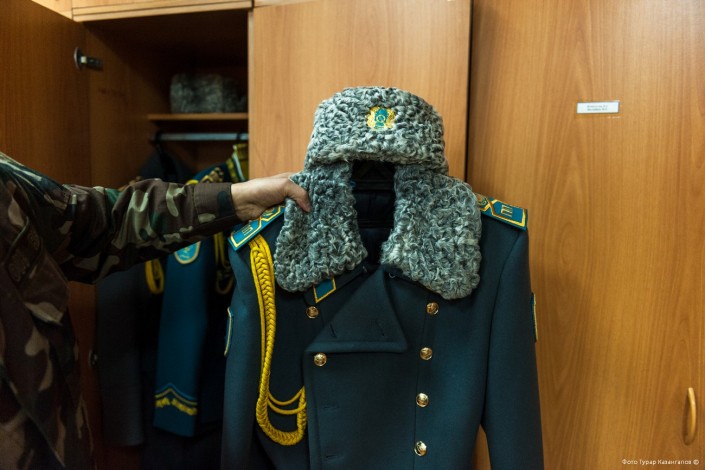Выдачей одежды занимается начальник склада церемониального батальона Арман Мейрамов. Он хранитель всего, что находится в этих шкафах.