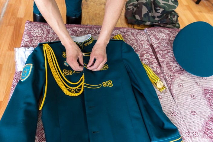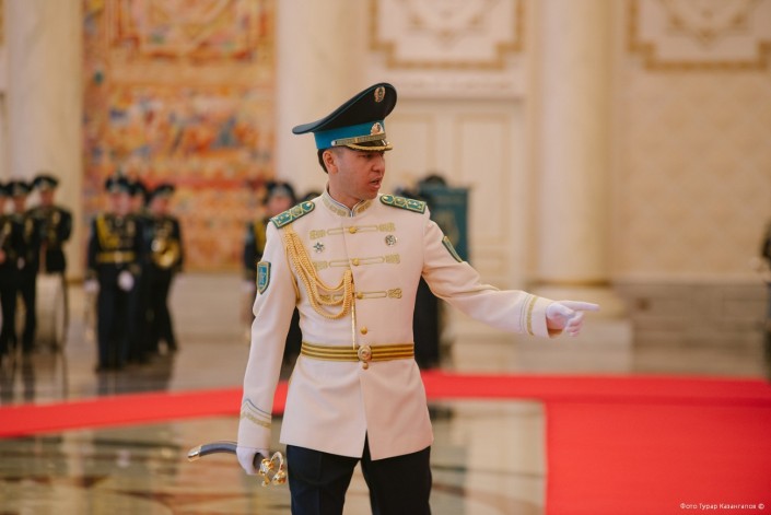 "Отличие нашей парадной форы от других структур, даже от той же роты почетного караула России, - у нас есть элементы орнамента, вышивка золотистыми нитками. Национальный колорит присутствует в нашей форме", - подчеркивает Арман Мейрамов.