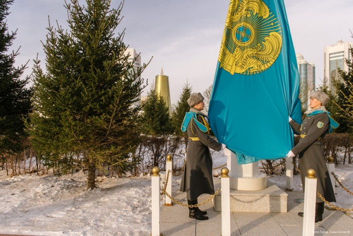 Вот один из примеров выноса государственного флага во время церемонии в Акорде. По уже сложившейся традиции каждый год 1 декабря проходит церемония поднятия штандарта.