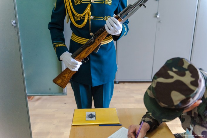 Военнослужащие Президентского полка демонстрируют свое мастерство, в том числе и во владении оружием. Его перед каждым мероприятием солдаты получают также под подпись.