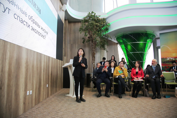 Одним из первых спикеров была руководитель единой детско-юношеской организации "Жас Ұлан" Динара Садвакасова. По ее мнению, сейчас предлагается большое множество различных программ по утилизации, раздельному сбору отходов и так далее. Однако акцент, по ее мнению, должен быть сделан на другом.