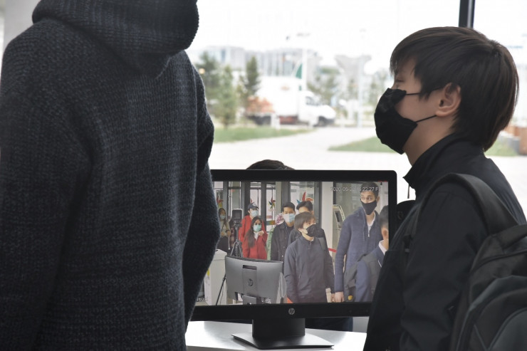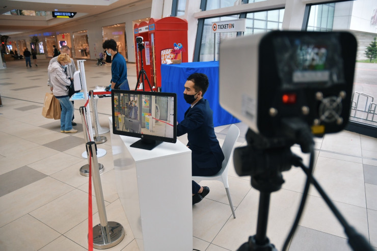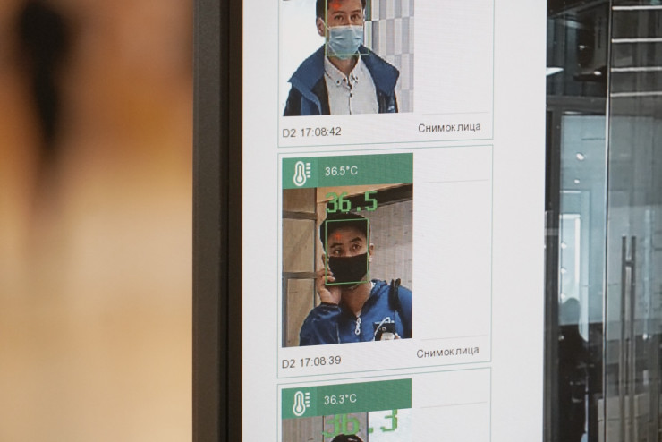 Температуру измеряют дистанционно, при помощи современных технологий. Камера фиксирует всех входящих и выводит на экран их показатели.