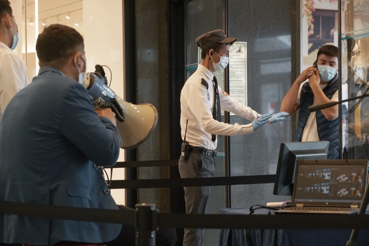 Вход в ТРЦ теперь напоминает паспортный контроль в аэропорту. Документы не спрашивают, но маска обязательна.