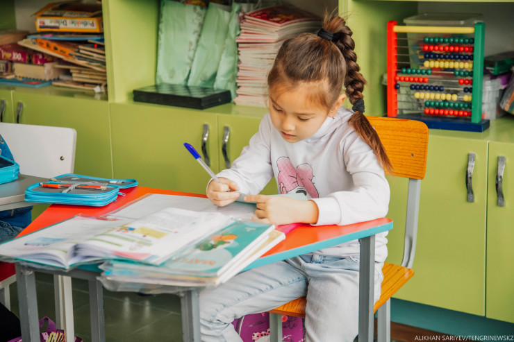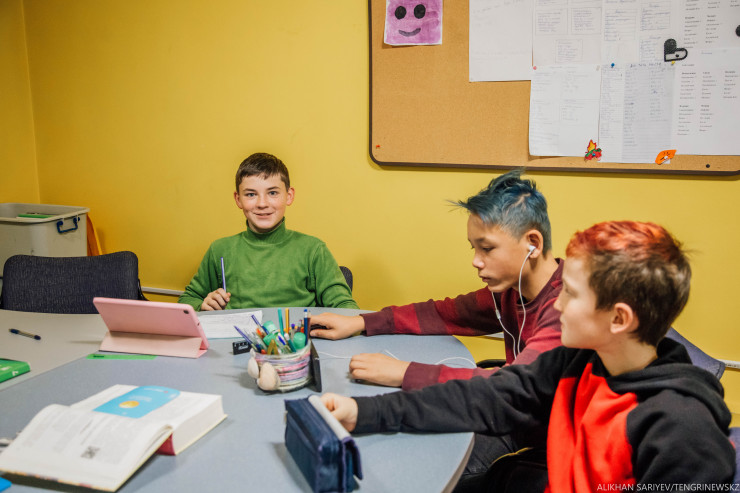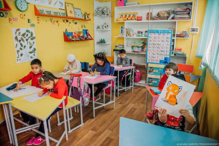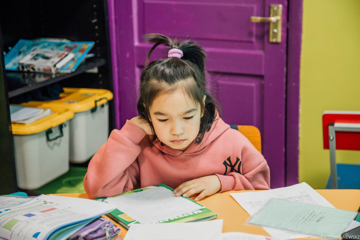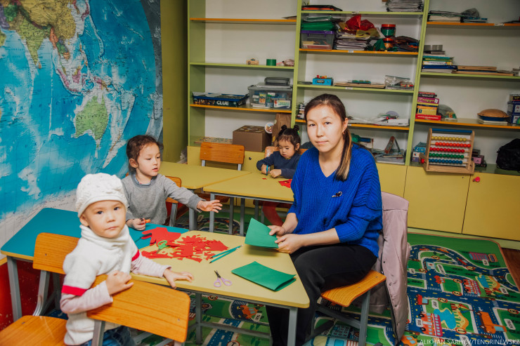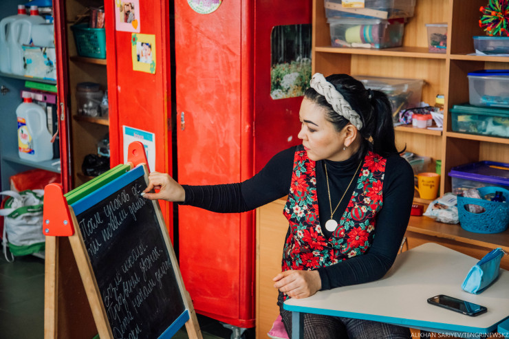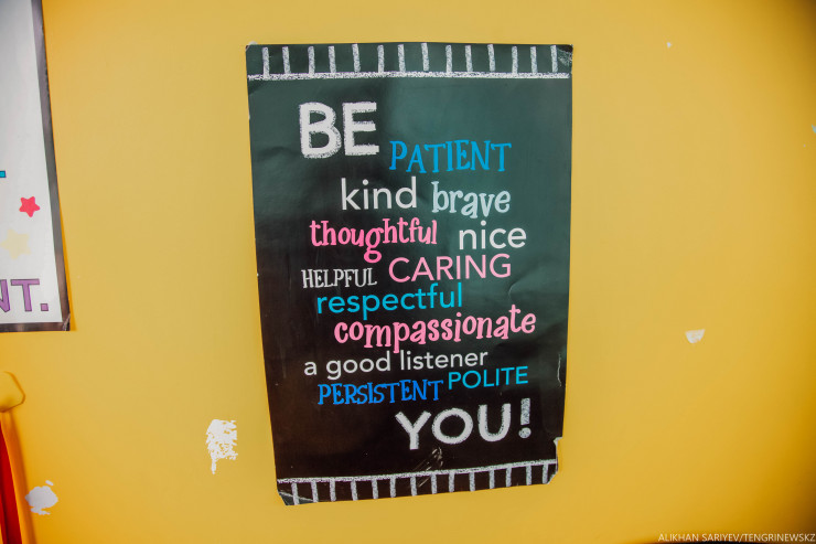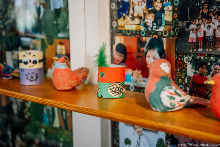 "Сәлеметсіз бе! Қалайсыз?" - с нами здоровается с виду очень аккуратная и улыбчивая женщина, это и есть та самая Виктория. Она нас сразу предупреждает, что будет говорить либо на английском, либо на казахском языке. Мы приходим к ней рано утром, в это время жизнь здесь кипит: кто-то читает, кто-то рисует, а кто-то конструирует.