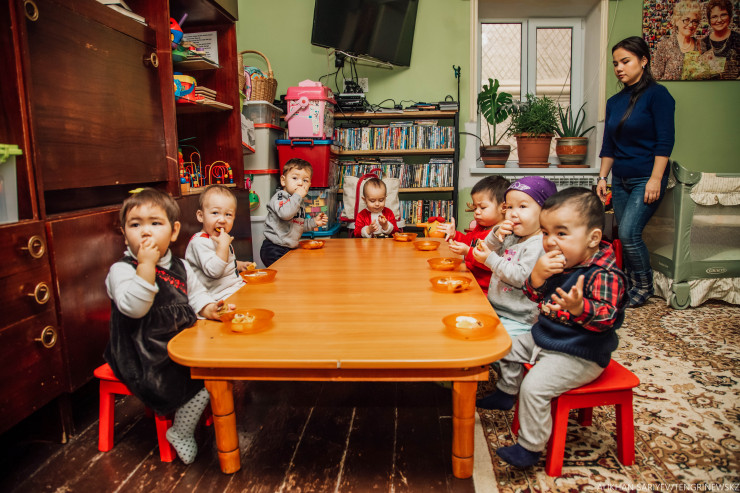 "А вот одна из наших мамочек! - Виктория представляет нам девушку, которая заглядывает в кухню. - Это жақсы мама, я ее знаю еще с детского дома, она год здесь жила, у нее была мечта - научиться готовить, на нашей кухне мы ее многому научили, например хорошо печь пироги, сейчас наша воспитанница в ожидании третьего малыша".