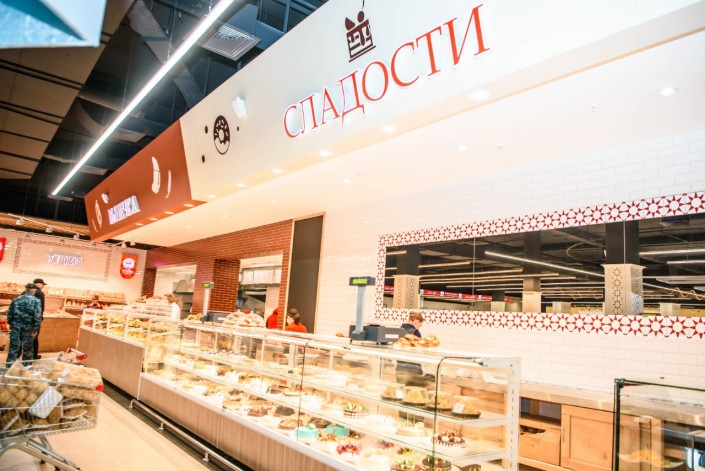 Поблизости с ним находится большой отдел кулинарии. Здесь гости супермаркета могут приобрести различные готовые блюда. Нежные блины с пылу с жару, курочка с овощами, шницель с картофелем и многое другое не оставят равнодушным даже самого искушенного гостя. Предусмотрена зона фуд-корта для покупателей, где можно выпить чашечку кофе или чая, есть специальное меню завтраков.