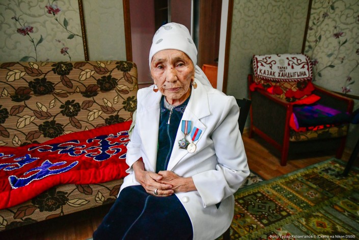 В разгар нашей беседы Рымкеш Байгонысовой позвонили. Она быстро собралась и вышла к воротам. Через несколько минут пенсионерка вернулась с открыткой в руках.