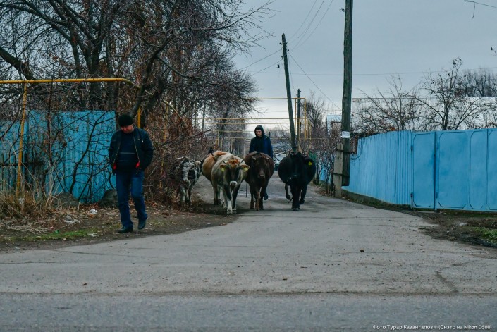 "Едят опавшую листву, - с удивлением для себя говорит их хозяин Танат. - Раньше и не знал, что они листья едят". Жизнь в поселке ему нравится. Говорит, пробовал жить в Алматы, но решил вернуться сюда, здесь спокойней.