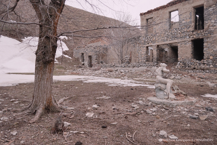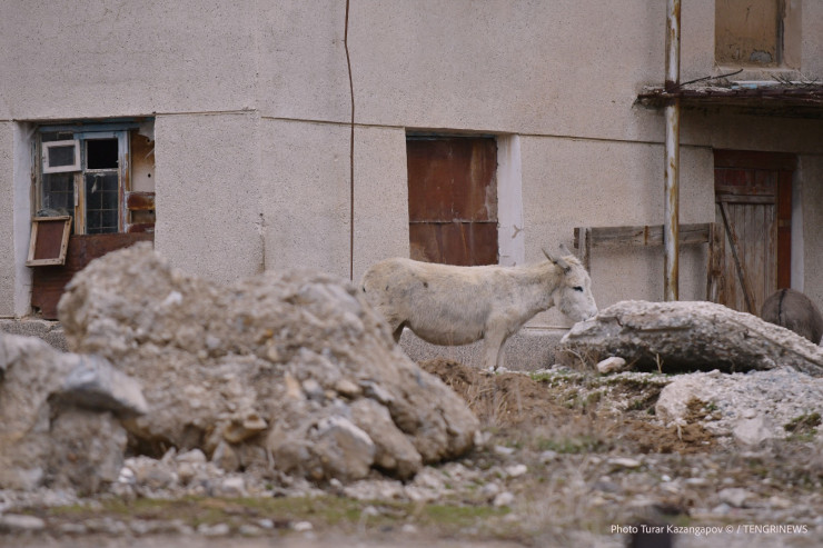 "Раньше здесь много людей было. Вот здесь контора рудника была, там школа, там клуб, там магазин, были столовая, фабрика, шахта, парк, садик, хорошо было. А потом работы не стало, все уехали в 91-92-м годах", - рассказывает Нурсауле.