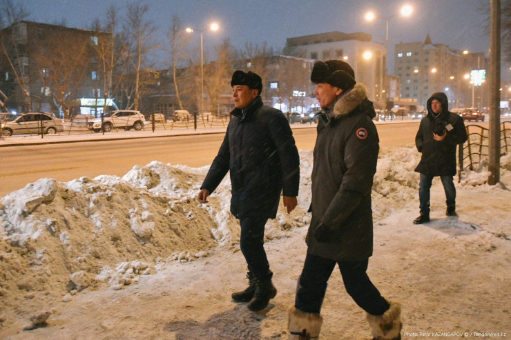 В ночь на 21 января улицы Нур-Султана начинает засыпать снегом. Проследить за уборкой города отправляются столичные чиновники вместе с акимом Алтаем Кульгиновым. К ним присоединились и корреспонденты Tengrinews.kz.