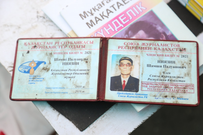 "Ниязин Шамши Палуанович. Член Союза журналистов Республики Казахстан", - написано во внутренней части корочки.