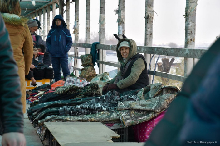 Айгуль 55 лет. Торгует здесь последние шесть месяцев, до этого продавала вещи в городе Есик и на других рынках Алматы.