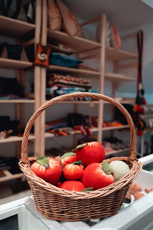 В туристском хабе Visit Almaty представлены шарфы и платки ручной работы.