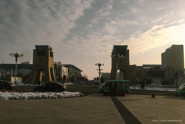 Две башни впереди - это граница, которая, по сути, разделяет Казахстан и Китай.