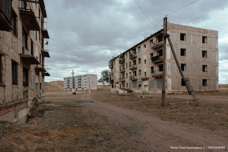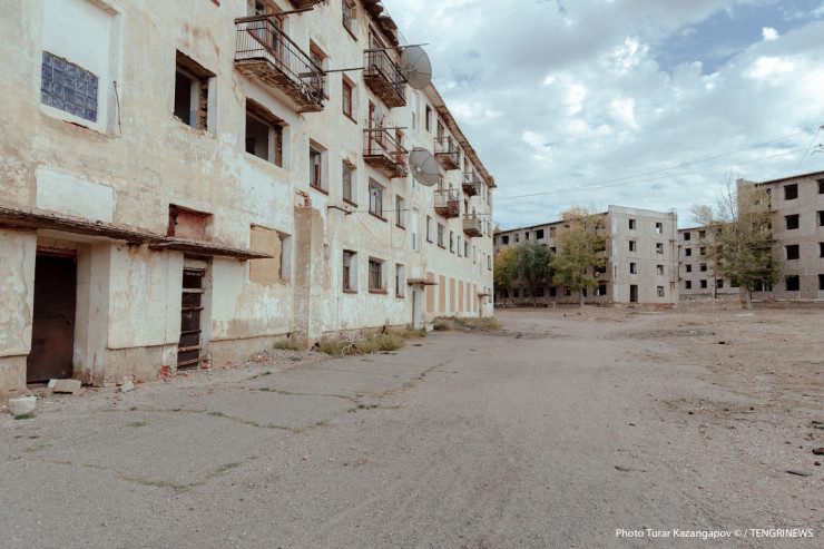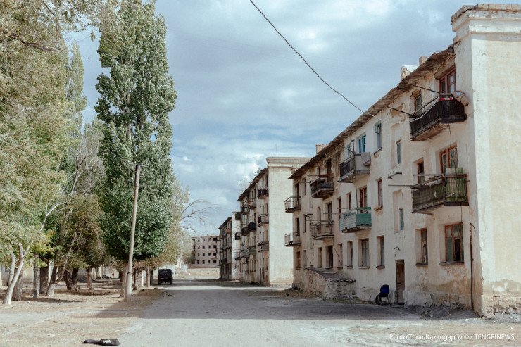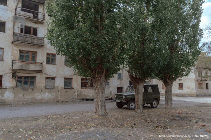 Неподалеку от Жезказгана есть поселок, который имеет очень интересную историю. Он возник в годы Великой Отечественной войны. Там добывали марганец, который был необходим для брони советских танков. В лучшие годы там проживало порядка девяти тысяч человек, сейчас осталось около 2500. Всех, кто приезжает в этот поселок, встречает микрорайон из пустых четырехэтажек. Они выглядят брошенными, но кое-где еще живут люди.
