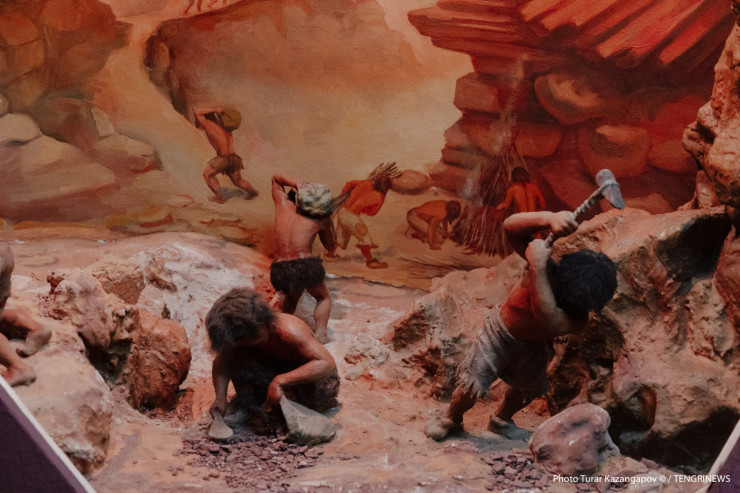 Экспозиция в музее Жезды. Добыча руды древними людьми.