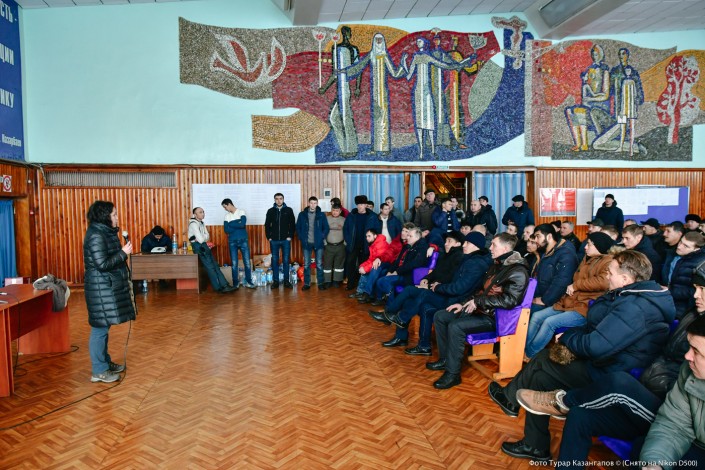 "Извините за глупый вопрос, но расскажите, пожалуйста, про свои тормозки...", - в итоге произношу я. Мой вопрос вызвал бурю смеха в зале. Но глаза шахтеров все равно говорили о том, что они еще не приняли нас. Они ждали не столько вопросов, а честной и открытой беседы.