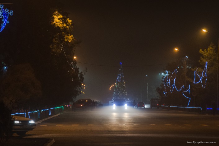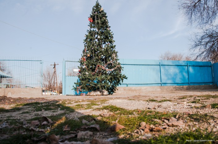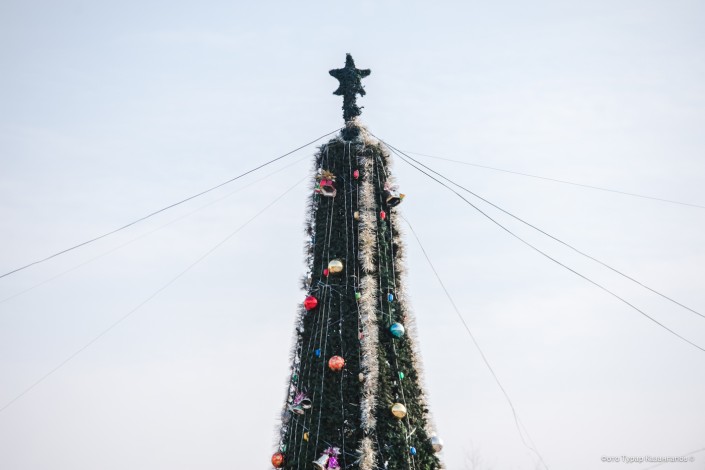 Ближе к обеду в Шу становится совсем солнечно и тепло. Так что наряженные елки, которые можно встретить повсеместно, выглядят еще более непривычно.