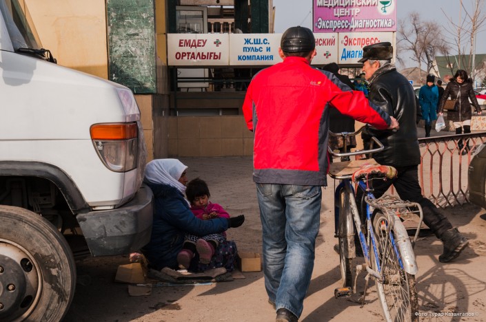 "Пенсионный возраст еще не подошел. Положение сложное. Живу одна, воспитываю внучку. Зарабатываю здесь 1 500 тенге в день", - еле сдерживая слезы, говорит женщина, поясняя что ежедневно 500 тенге ей приходится тратить на дорогу из Толе би и обратно.